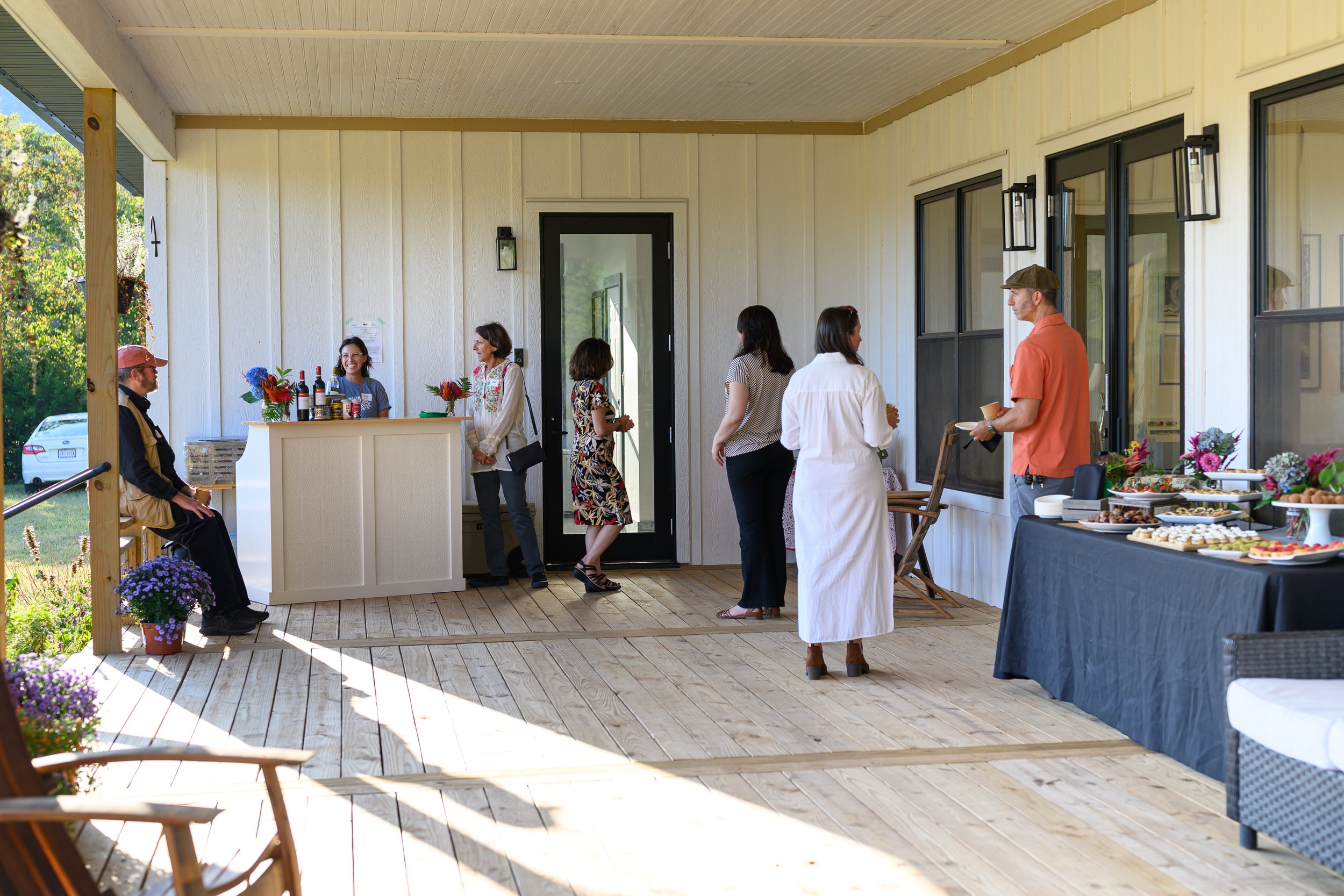 Host your next special event, rehearsal dinner, or corporate gathering with us at Glass Hollow. In additional to a beautiful gallery and studio space, Glass Hollow has an elevated event room with expansive mountain views. Our large back porch and gardens are the perfect backdrop for your next gathering.